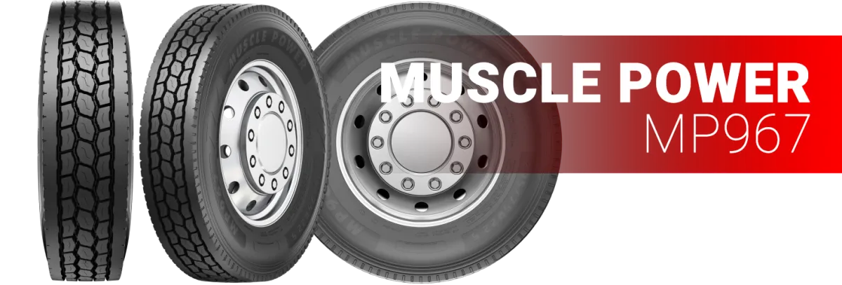 The MP967 tire is designed with a closed shoulder for enhanced performance and longer mileage, ensuring even tread wear throughout its lifespan. Stone ejectors help extend tire life by preventing damage, while the full 28/32nds tread depth provides durability and reliability. Additionally, the wide footprint offers greater traction, making this tire a dependable choice for demanding road conditions.