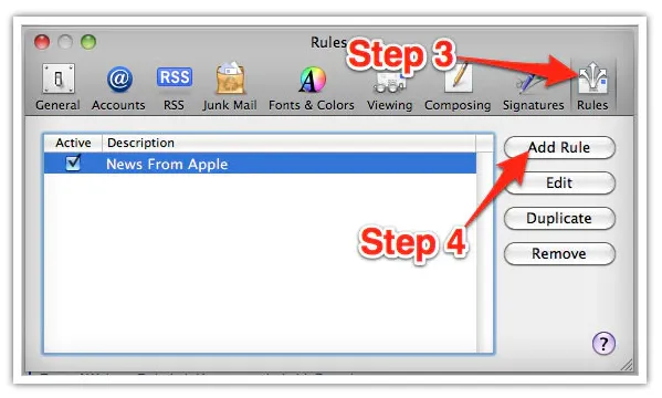 In the “Rules” window, type a name for your rule in the “Description” field.